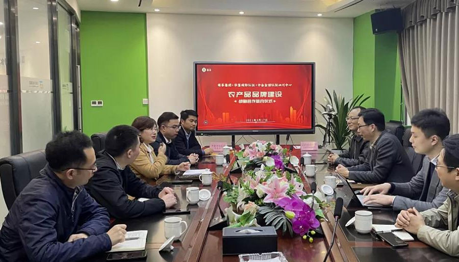2021年3月17日下午,蜀茶集团、华鉴国际认证和中合金诺认证四川中心战略合作签约仪式隆重举行。华鉴认证董事长魏萌,总经理魏驿俨,省农产品经营集团董事、副总裁,四川蜀茶实业集团有限公司董事长何昕等出席签约仪式。